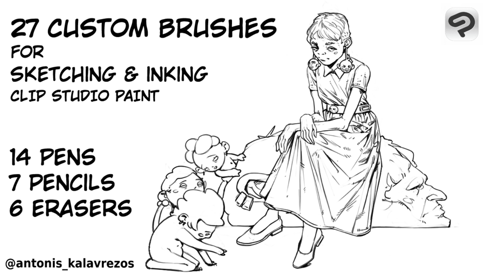 Bring your sketches and lineart to life with The Pencil and Ink Pack β a carefully crafted set of 27 digital brushes designed for sketching, inking, and refining your artwork in Clip Studio Paint.